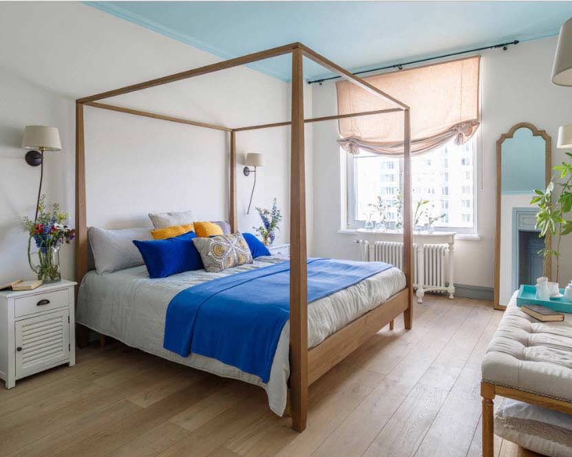 The flooring in this dreamy bedroom is mannington exotics mayan pecan in pepper.
