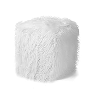 Faux fur vanity bench entryway bench furry long hair white ottoman dm furniture fuzzy bench with metal legs for living room, bedroom, dining room, home decorative, white.