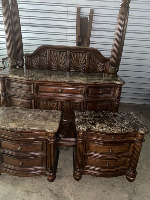 Enjoy free shipping on most stuff, even big stuff. Daphne traditional antique white 5 pieces marble bedroom set w. It makes a perfect designing piece when used as tops of nightstands and dressers. Traditional cherry poster canopy bed leather & marble master 4pc bedroom set.